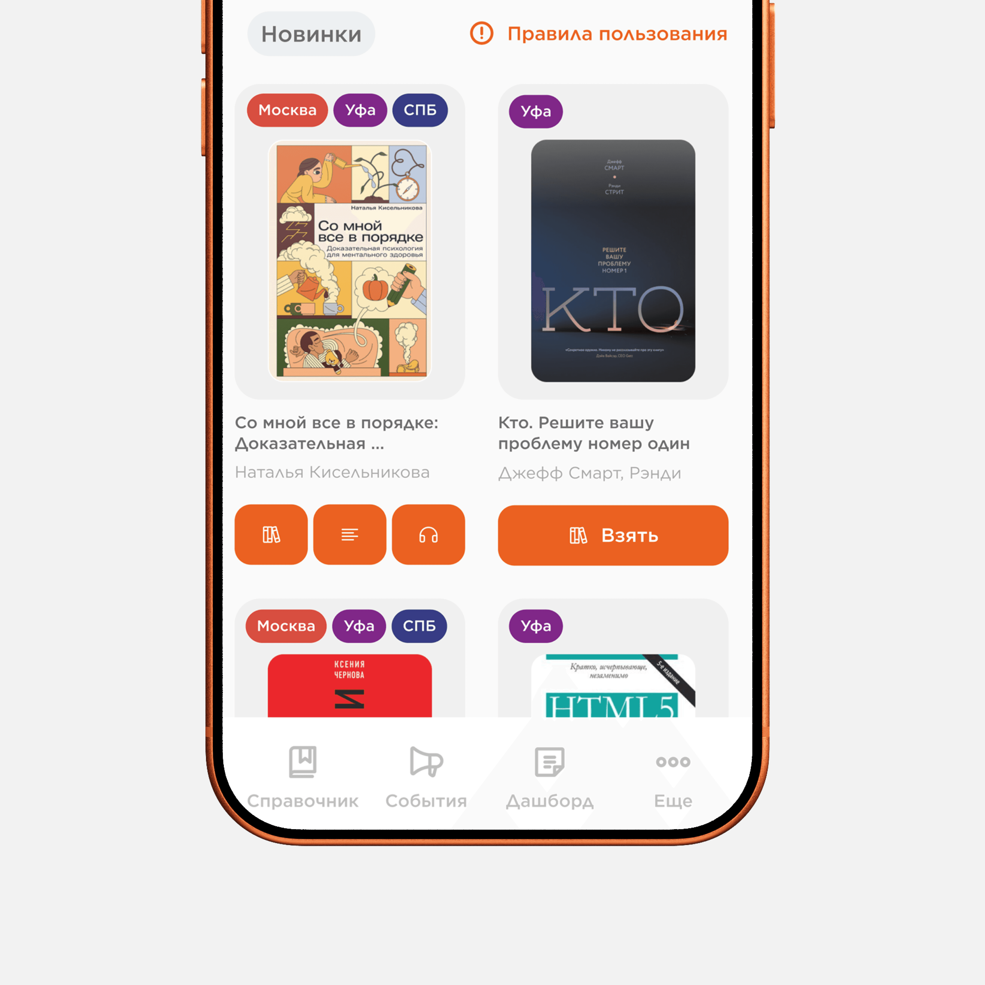 Если разместить метки городов в верхней части карточки, статус доступности книги станет заметнее и будет считываться до взаимодействия с действиями.